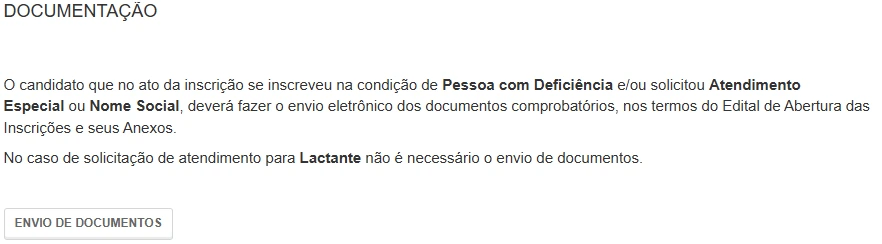 Para essas solicitações, o candidato deverá encaminhar eletronicamente o laudo médico contendo a justificativa e referência ao CID-10, além do Requerimento de Atendimento Especial (Anexo indicado no edital).
