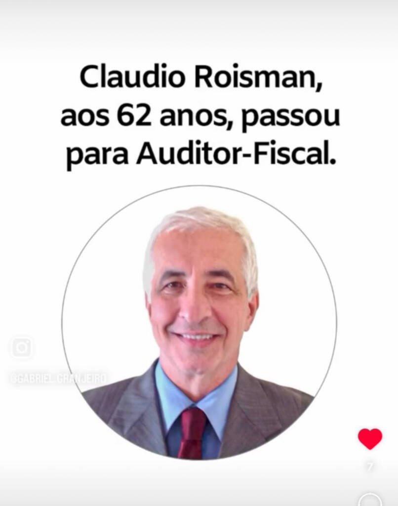 Será que existe idade certa para buscar os seus objetivos? O professor Claudio Roisman provou que não: aos 51 anos de idade, ele iniciou sua jornada de estudos para concursos públicos e hoje é Auditor Fiscal da Secretaria de Estado da Fazenda do Espírito Santo e docente!
