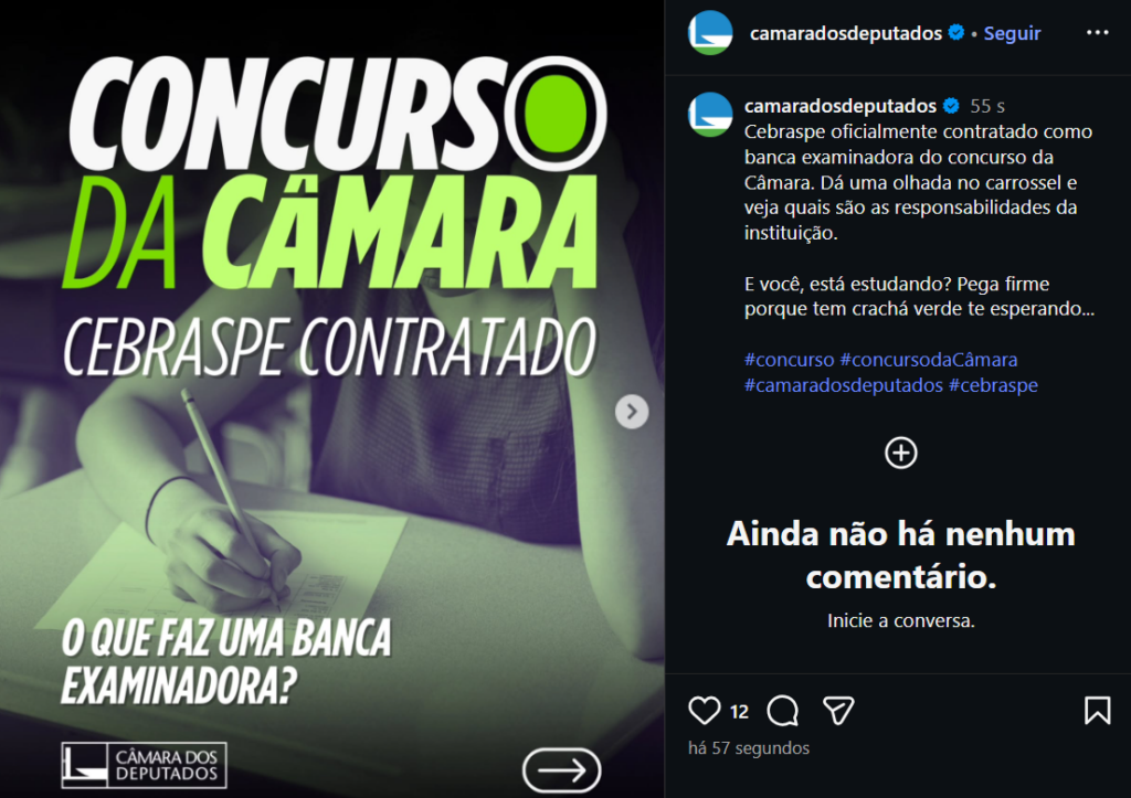 A Câmara dos Deputados oficializou o contrato com a organizadora no dia 26 de dezembro por meio de divulgação nas redes sociais. Veja abaixo: