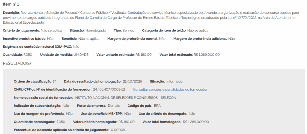 O extrato de contrato homologado foi divulgado no PNCP (Portal Nacional de Contratações Públicas), na data de 21 de outubro de 2025, oficializando a escolha. Confira aqui!