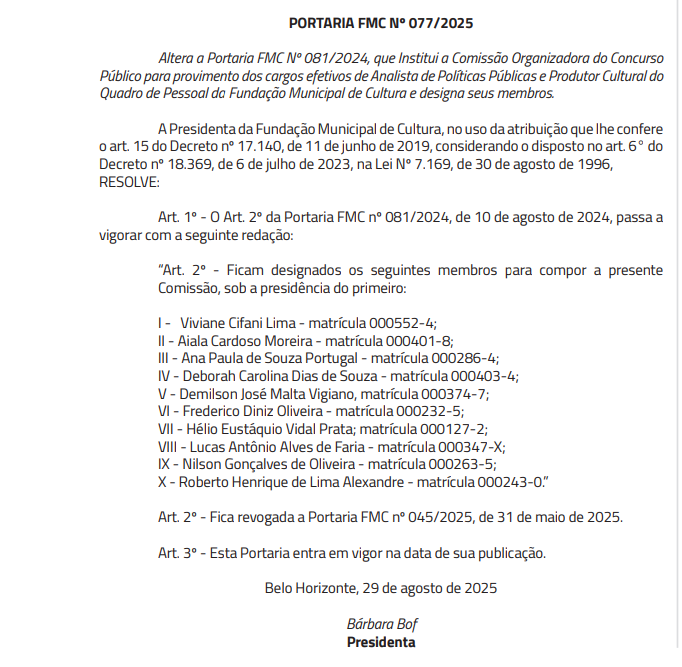 O Concurso FMC Belo Horizonte MG está cada vez mais próximo! Nesta terça-feira, 2 de setembro de 2025, foi publicada a formação da comissão responsável pelo novo edital da Prefeitura de Belo Horizonte.