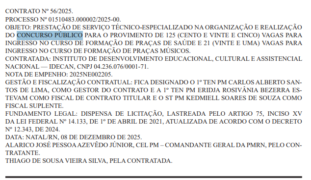 Segundo o contrato com a banca, disponibilizado no Diário oficial do Estado do Rio Grande do Norte, nesta quarta-feira, 10 de dezembro de 2025, o certame irá ofertar 21 vagas para ingresso no curso de formação para Praças Músicos. Além disso, serão ofertadas 125 vagas para Praças de Saúde.