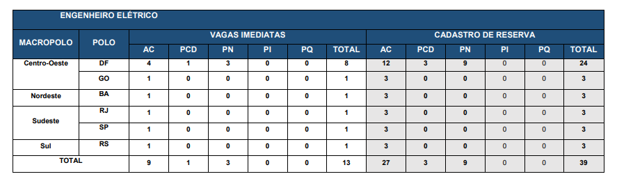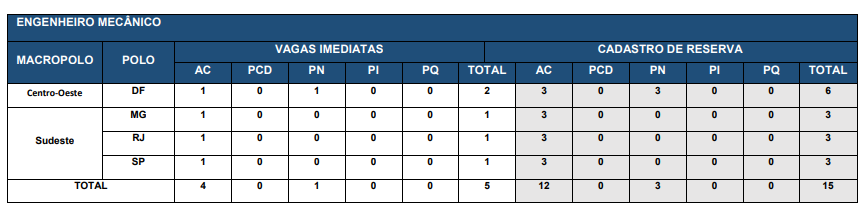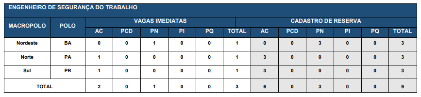 As vagas contemplam diferentes polos de atuação em todo o país, conforme a necessidade da instituição.