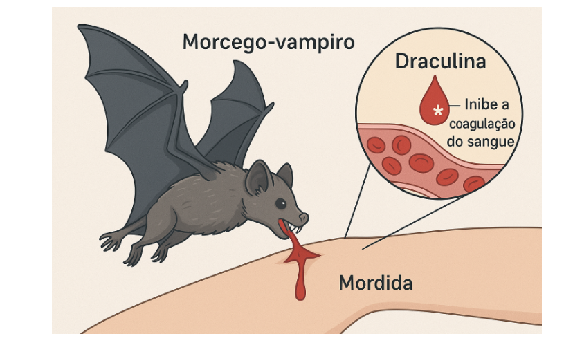 Esse anticoagulante é uma proteína chamada draculina — sim, o nome é uma homenagem ao Drácula. A draculina inibe um fator de coagulação chamado fator Xa, impedindo a formação do coágulo e mantendo o sangue líquido. É como se o morcego “enganasse” o sistema hemostático da vítima.