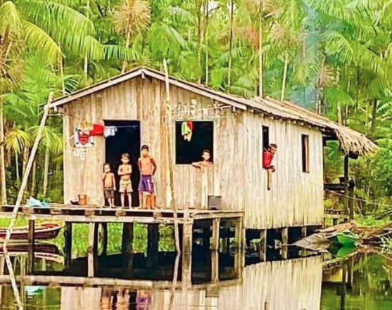 Andreia não possui fotos da época em que morava em uma comunidade ribeirinha. Sua casa era bem parecida com essa, localizada no Seringal Alegria. Na época, sequer havia eletricidade na região.