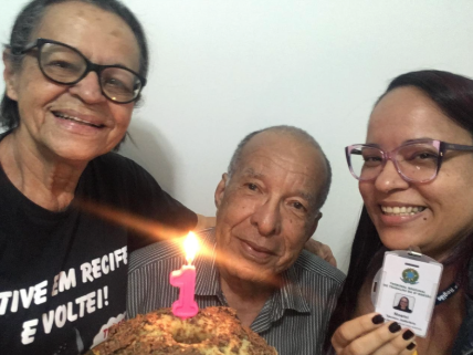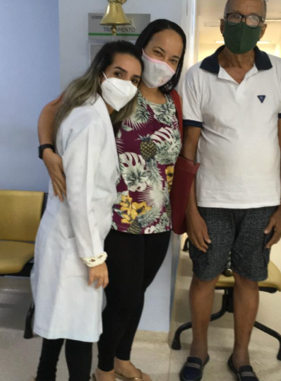 Último dia de radioterapia, com o pai e a enfermeira que cuidou dele durante o tratamento.