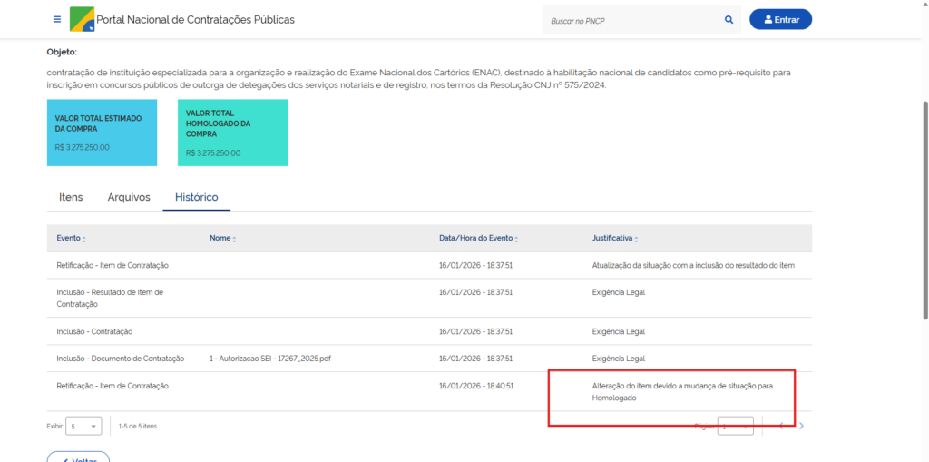 A homologação da contratação da Fundação Getúlio Vargas – FGV como banca foi realizada na sexta-feira, 16 de janeiro de 2026.