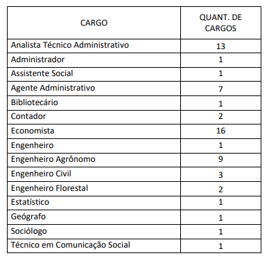 Ao todo, serão solicitadas 60 vagas. Confira abaixo os cargos e vagas que serão enviados na solicitação: