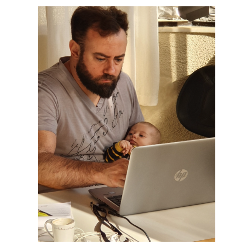 Muitas vezes, Flávio assista a videoaulas do Gran com o pequeno Gabriel no colo.