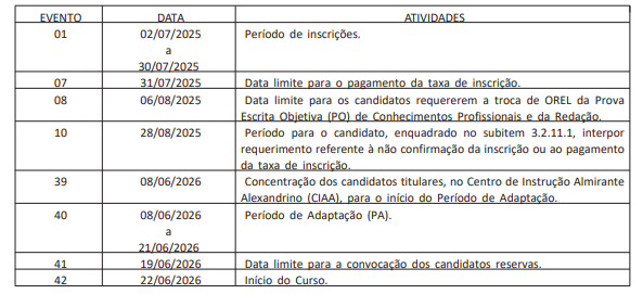 • Local de inscrição: no site www.ingressonamarinha.mar.mil.br