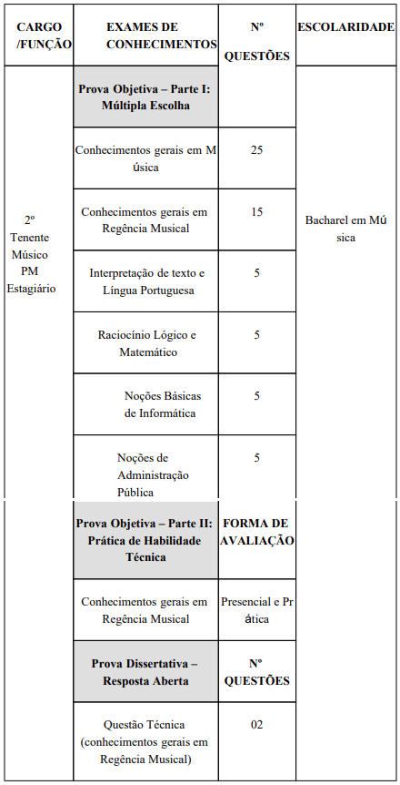 Termo de referência do concurso PM SP 2º Tenente Músico