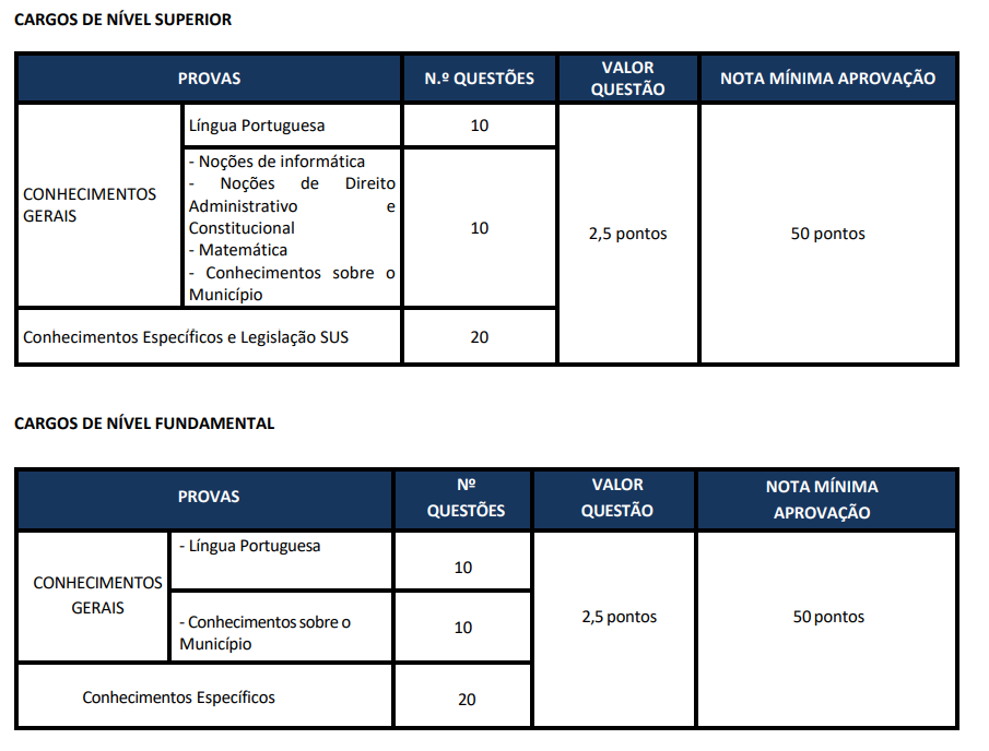 - Prova objetiva para todos os cargos (eliminatório e classificatório);