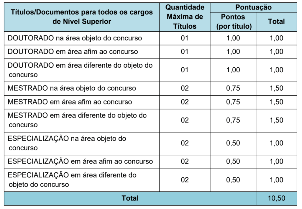 Entenda-se por “na área objeto do concurso”, título apresentado equivalente ao cargo e que contenha em seu programa, disciplina/módulo que contribua para o exercício do cargo para o qual o candidato tenha sido aprovado, conforme rol exemplificativo: