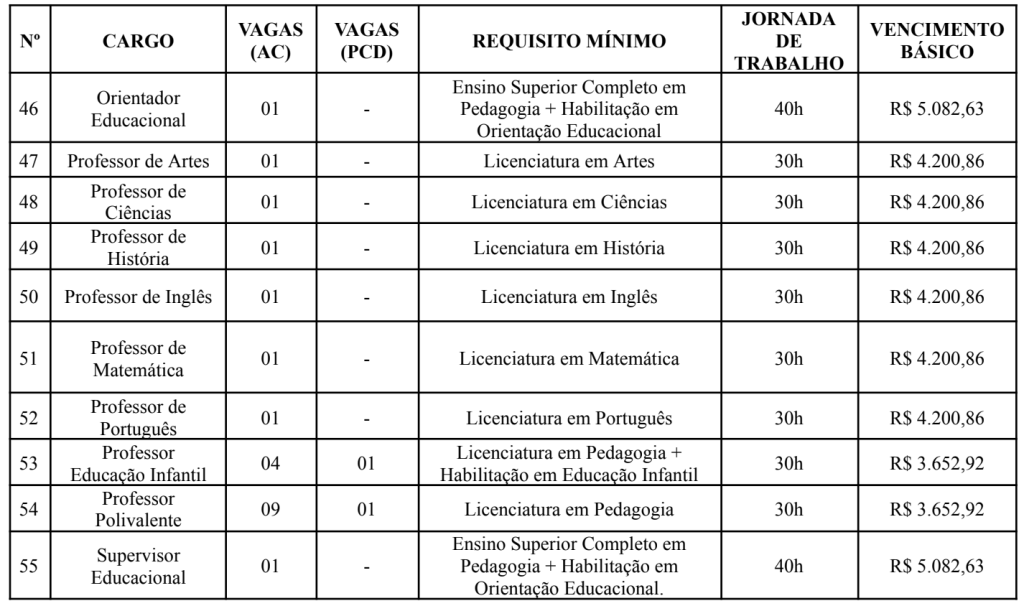 Confira logo abaixo a distribuição dos cargos e vagas: