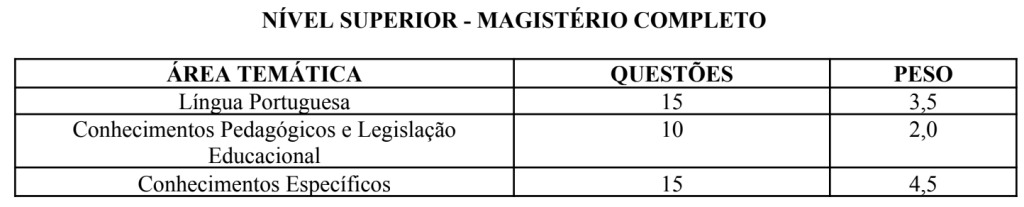 Serão convocados à prova de títulos os candidatos dos cargos de nível superior – magistério conforme quadro abaixo: