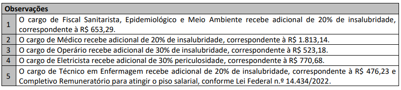 Vale ressaltar que todos os cargos receberão Vale Alimentação no valor de R$200 e os seguintes acréscimos abaixo: