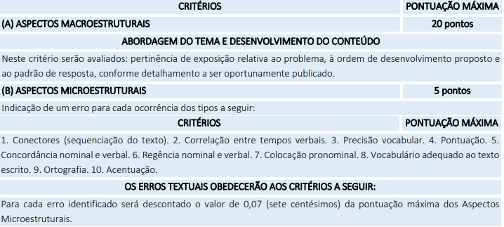 A etapa, de caráter eliminatório e classificatório, foi aplicada no mesmo dia de realização da prova objetiva, sendo constituída de 2 (duas) questões sobre o conteúdo programático, com valor de até 50 (cinquenta) pontos, sendo de 25 (vinte e cinco) pontos cada questão.