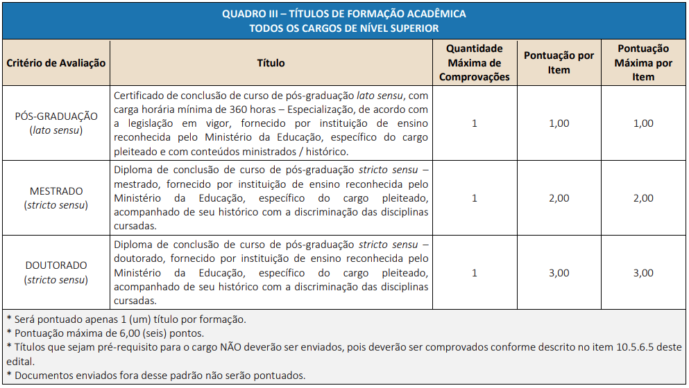 - Prova de títulos, classificatória, para cargos de nível superior.