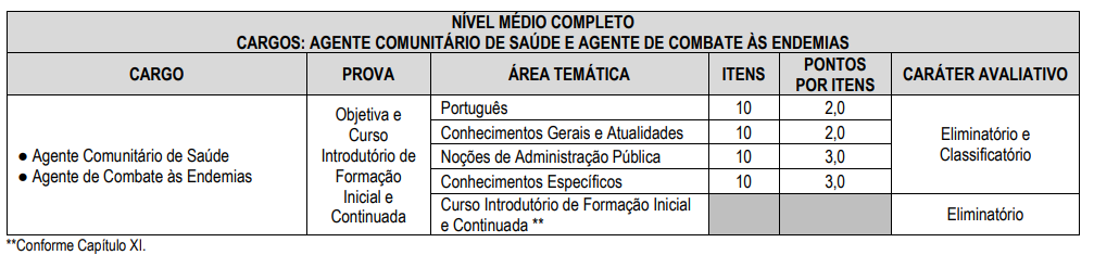 - Cargos: Agente Comunitário de Saúde e Agente de Combate às Endemias
