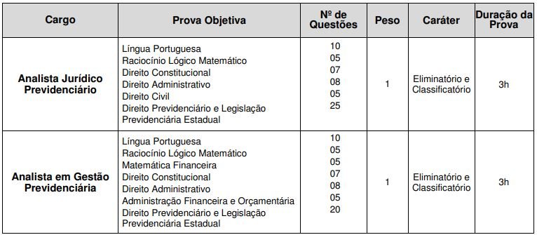 • Cargos: Analista em Gestão Previdenciária e Analista Jurídico-Previdenciário