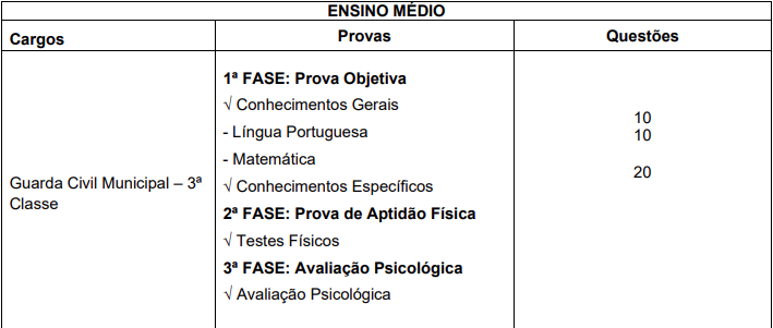 Etapas e provas do concurso Guarda de Catanduva