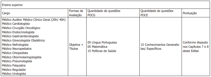 A etapa, de caráter eliminatório e classificatório, foi avaliada na escala de 0 (zero) a 100 (cem) pontos. As questões de conhecimentos gerais e específicos foram do tipo múltipla escolha, com 5 (cinco) alternativas cada, tendo uma única resposta correta.
