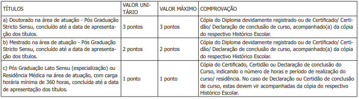 A etapa, de caráter apenas classificatório, teve valor máximo de 3 pontos. O candidato que não entregou os títulos não foi eliminado do concurso.