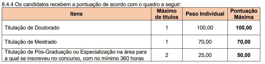 A apresentação dos Títulos deve ser realizada pelos candidatos aprovados na Prova Objetiva (PO). A soma total da pontuação dos Títulos fica limitada a 100 pontos.