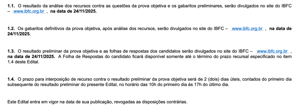 Assim, os gabaritos definitivos e o resultado preliminar da prova objetiva deverão ser divulgados em 24 de novembro, no site da banca, IBFC.