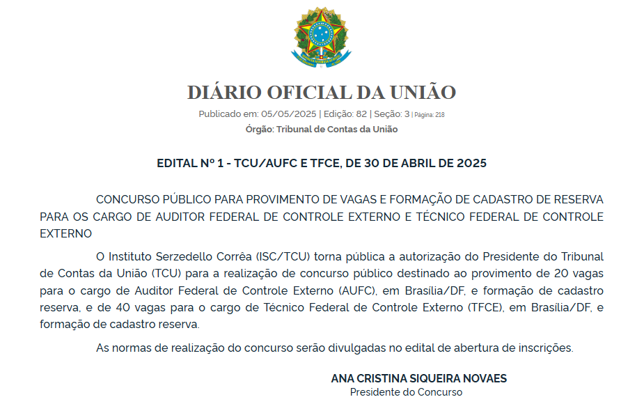 Download disponível – Novo concurso TCU autorizado! 60 vagas + CR