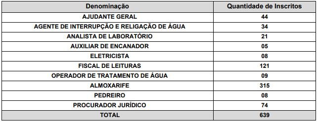 No total, foram registrados 639 candidatos inscritos, conforme relação abaixo: