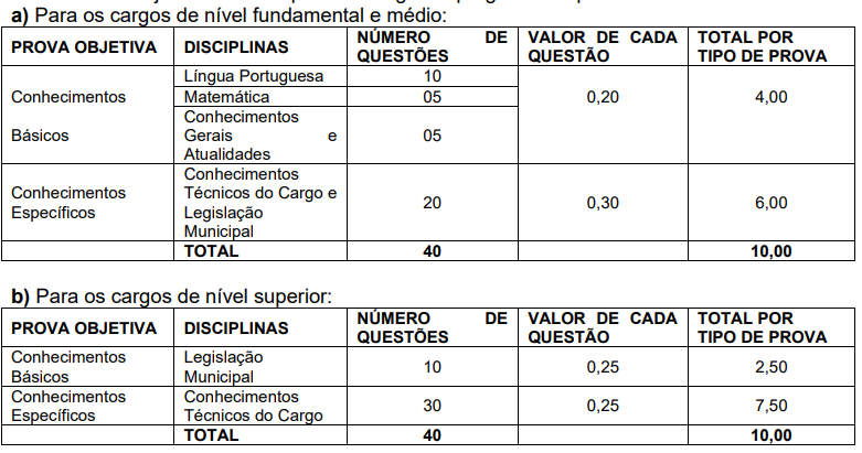 - Prova objetiva, para todos os cargos;