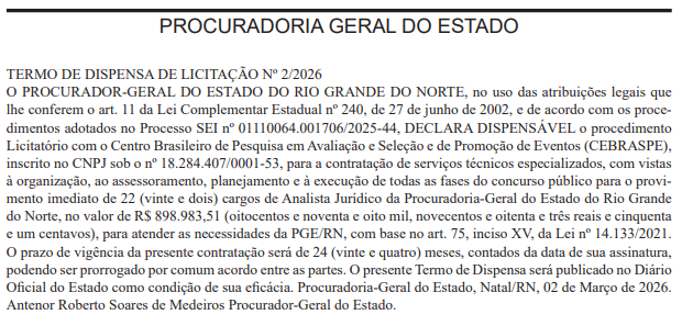 Concurso PGE RN Termo de Dispensa