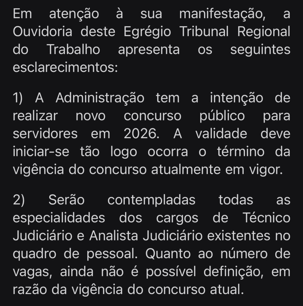 A informação foi repassada, esta semana, por meio dos servidores da Ouvidoria do TRT da 22ª Região em resposta ao pedido realizado pelo time de jornalismo do Estratégia Concurso.