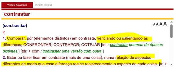 Para confirmar que a A está correta, basta verificar o mero sentido da palavra “comparar” e, especificamente, da palavra “contrastar”, uma comparação com foco nas diferenças. Há comparação de elementos distintos, exatamente como esclarece o próprio sentido da palavra. Por definição, esse texto tem estrutura comparativa. Vejam: