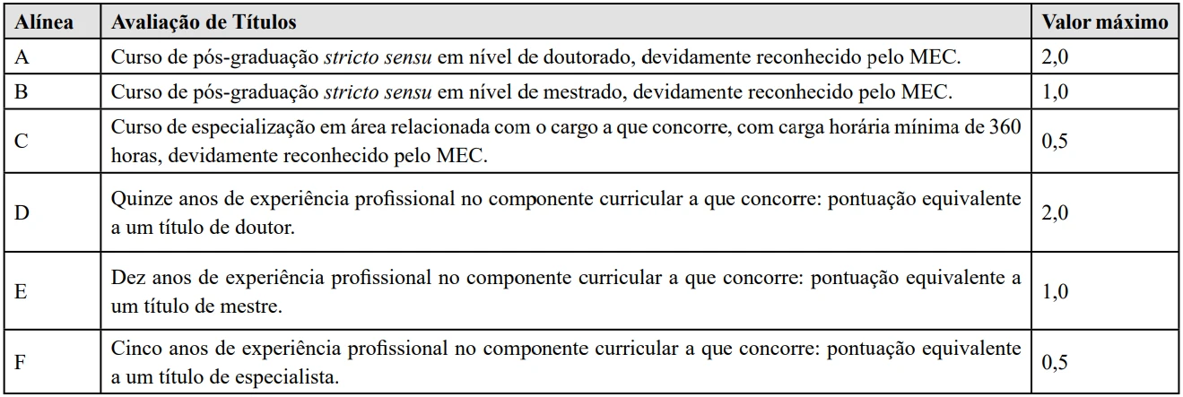 Consistirá na análise dos títulos e experiências apresentados pelos candidatos, com relação ao componente curricular do cargo a que concorre.