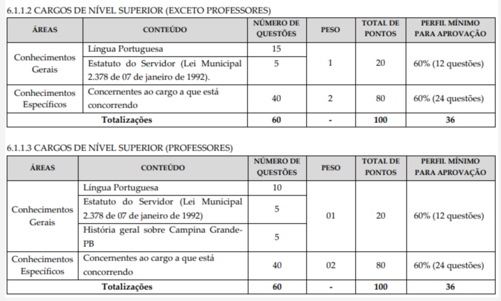 - Prova objetiva para todos os cargos (eliminatório e classificatório);
