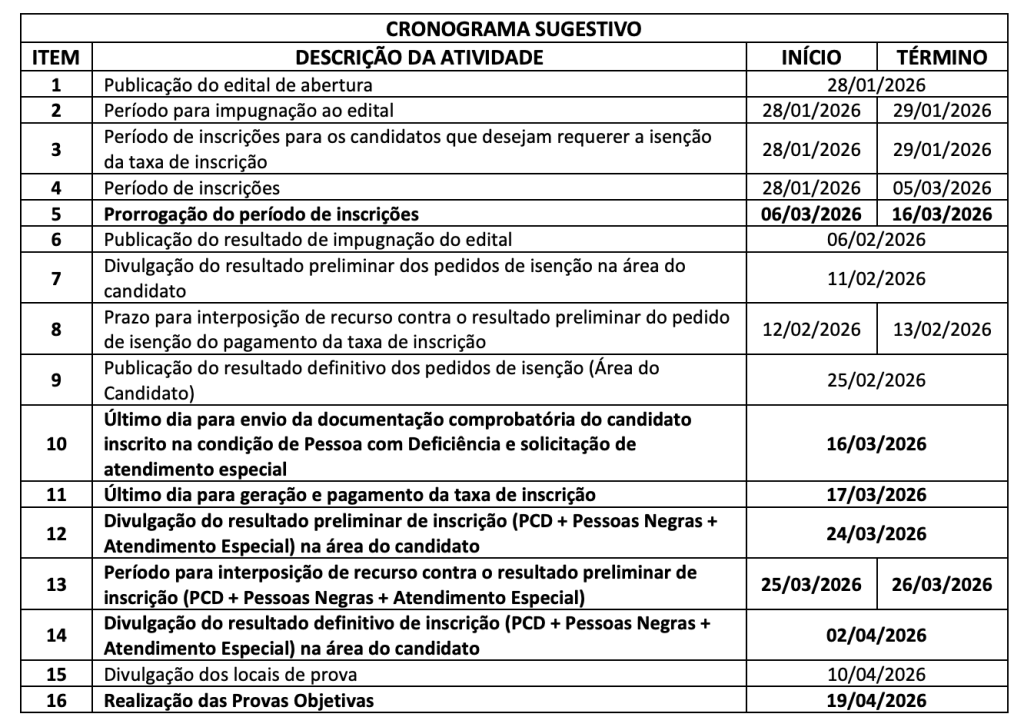 A prova objetiva será aplicada no dia 19 de abril.