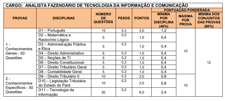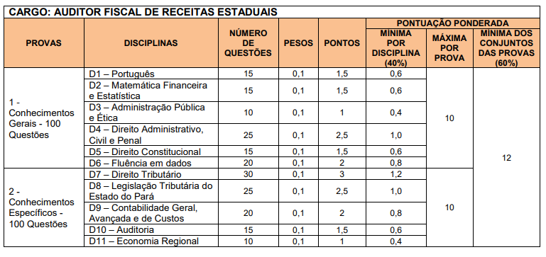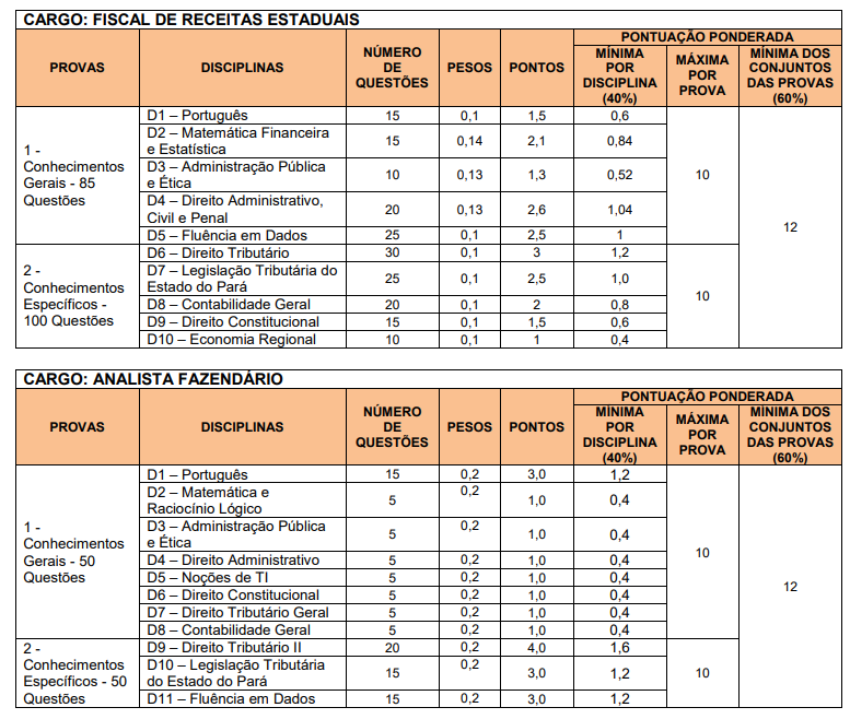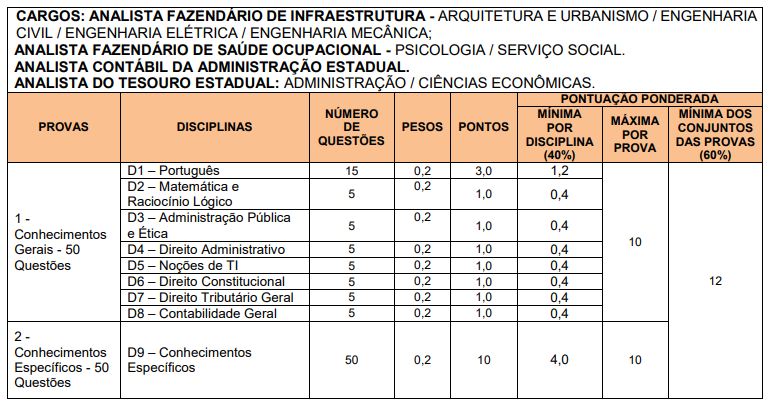 • Cargos: Auditor Fiscal, Fiscal de Receitas e Analista Fazendário