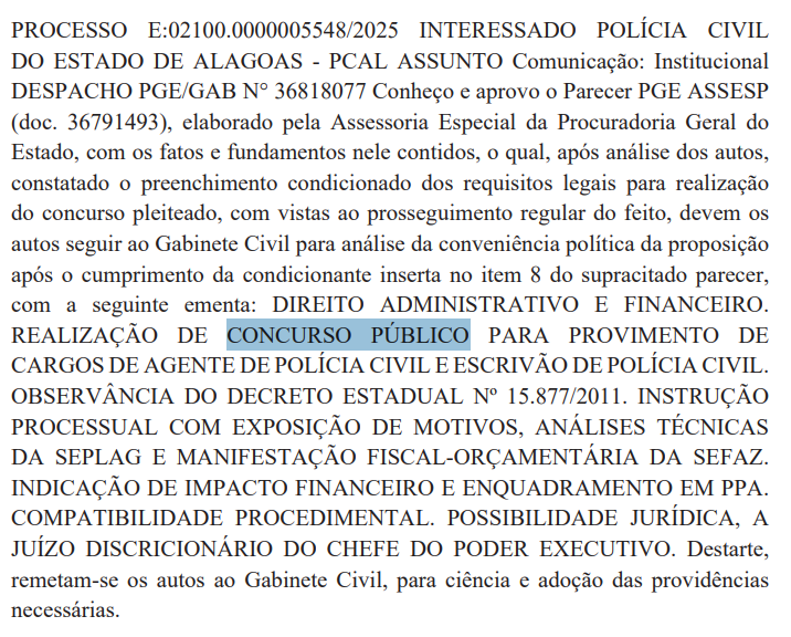 A Procuradoria-Geral de Alagoas (PGE) autorizou a realização de um novo concurso PC AL (Polícia Civil do Estado do Alagoas).