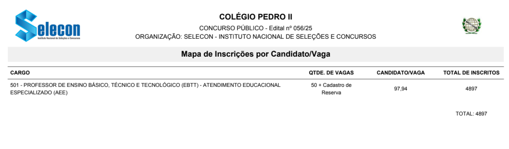 As provas do novo concurso Colégio Pedro II serão aplicadas no dia 08 de fevereiro de 2026 e contam com 4.897 inscritos.