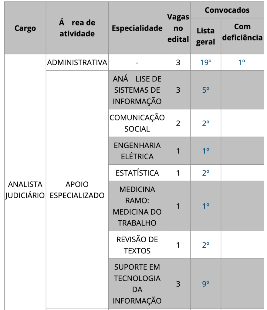 Cargos e vagas do último concurso STF