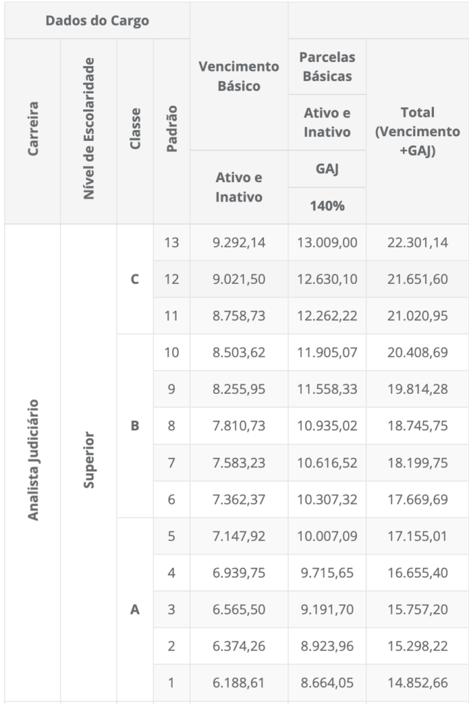 • Analista Judiciário (Vencimento básico + GAJ)