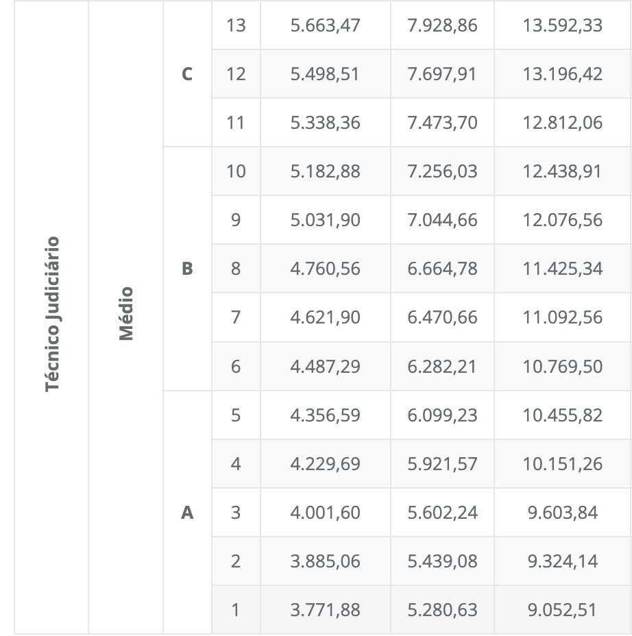 • Técnico Judiciário (Vencimento básico + GAJ)