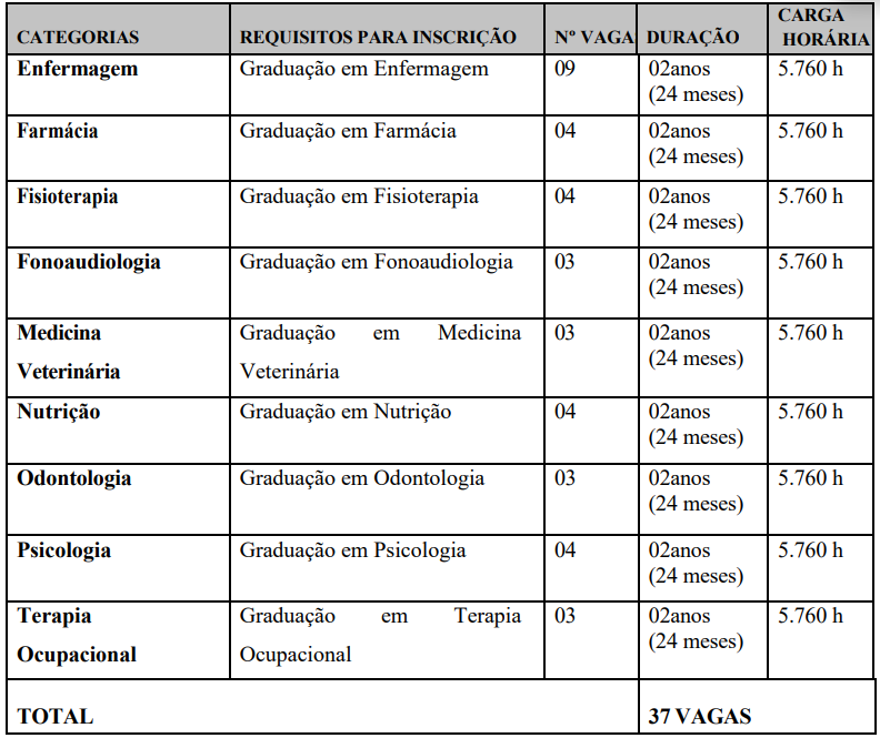 Para a presente Chamada Pública de Seleção serão ofertadas 37 vagas para o Curso de Especialização com Caráter de Residência Multiprofissional em Atenção Básica: Saúde da Família e Comunidade, conforme a distribuição abaixo: