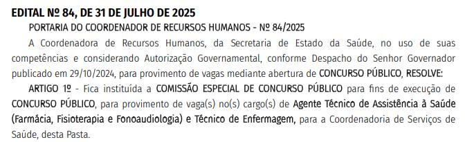 De acordo com portaria publicada no Diário Oficial de São Paulo, foi instituída a comissão especial de concurso público para fins de execução do concurso SES SP.